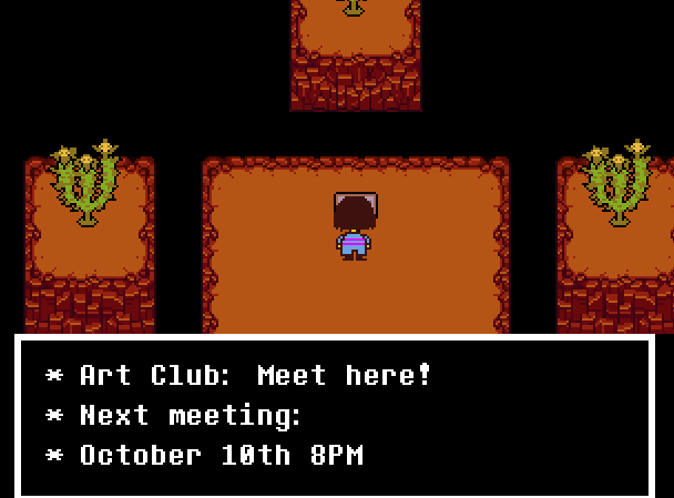 MTT 리조트의 호텔 객실이 있는 홀에서 오른쪽 하단의 벽을 통과하여 Art Club 모임을 언급하는 표지판을 찾을 수 있습니다. 이 회의는