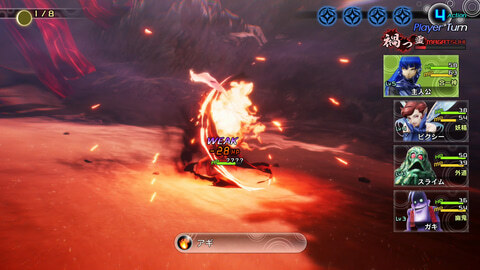"프레스 턴 배틀 '에서는 오른쪽 상단의 프레스 턴 아이콘의 수만큼 행동 할 수있다. 친숙한 명령 배틀 식 시스템이다