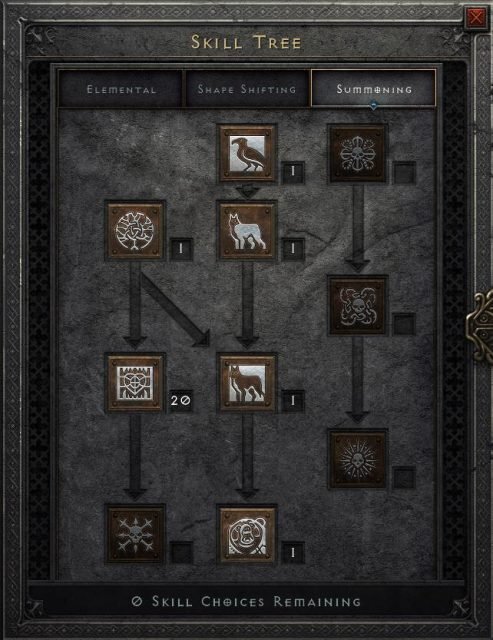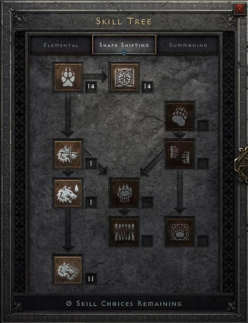 Fury Werewolf Druid는 Shape Shifting Tree 에 중점을 두지 만, Summoning Tree 에도 약간의 포인트를 투자해야 합니다 . 이 디아블로 2 부활한 드루이드 빌드를 플레이할 때 다음 기술을 사용하게 됩니다.