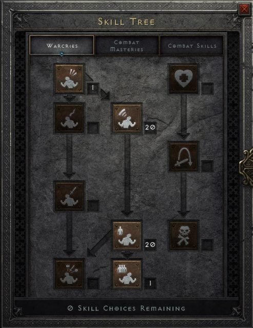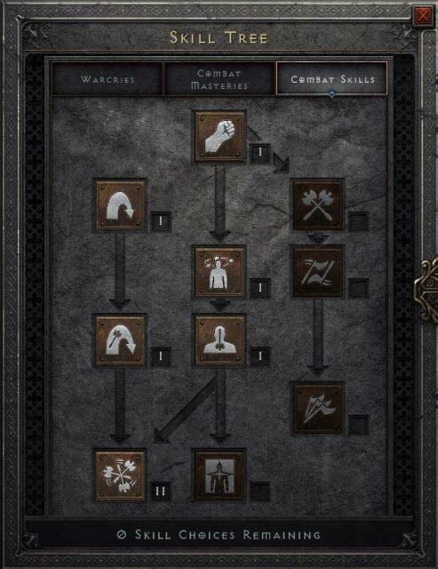이 가이드는 Lvl 40에서 시작하므로 먼저 회오리 바람과 무기 숙련도에 집중한 다음 외침과 강철 피부를 완성하는 데 집중하고 싶을 것입니다.