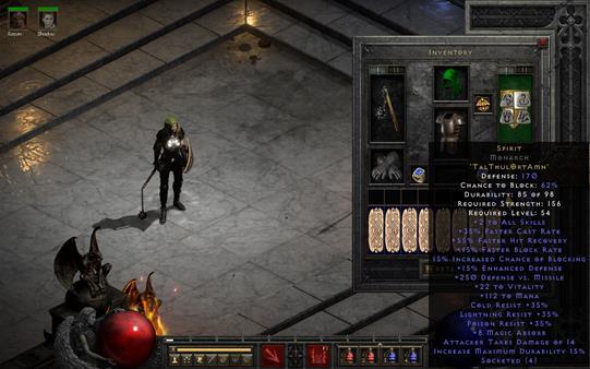 Spirit (Runeword): 이 방패는 모든 기술에 +2 및 +25-35% FCR을 제공합니다. 또한 원소 저항, 빠른 적중 회복 및 활력과 같은 많은 방어 통계를 제공합니다.