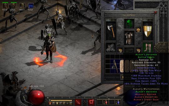 Aldur's Advance : 이 부츠는 40% 더 빨라진 달리기/보행 속도와 화염 저항 및 생명력을 제공합니다.