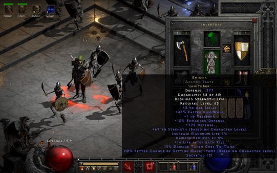 에니그마(룬워드) 이 갑옷은 모든 스킬에 +2를 제공할 뿐만 아니라 많은 힘과 생명력을 제공합니다. 또한 Teleport 주문을 제공합니다. 당신이 어딘가에 나타날 때마다 모든 미니언이 당신 주위에 스폰되기 때문에 텔레포트 주문을 갖는 것은 이 빌드에 좋습니다. 이것은 당신 주위에 고기 방패를 만들고 한 곳에서 당신의 군대를 소집합니다. 이것은 일부 전투에서 매우 중요할 수 있습니다. 적진 뒤로 순간이동하고 군대가 뒤에서 궁수와 주문 시전자를 제거하도록 할 수 있기 때문입니다.