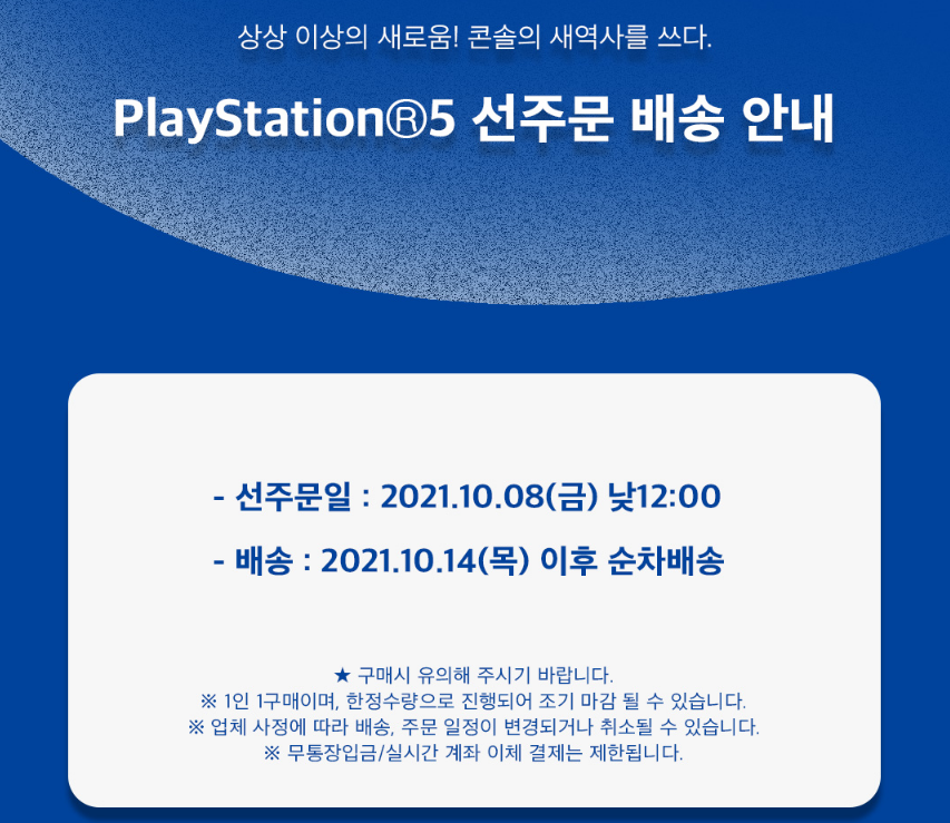 PS5 사전예약 10월 8일 금요일 낮 12시 하이마트