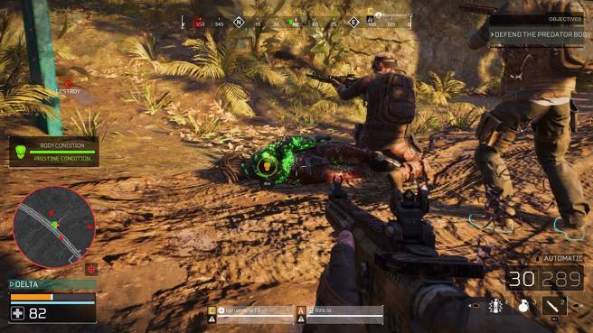우리가 특히 유용하다고 발견한 한 가지 방법은 완료된 목표 지역에서 프레데터의 주의를 분산시키고 한 명의 병사가 혼자 다음 목표를 수행하기 위해 출발하는 것입니다. 이것은 다음 목표에서 유리한 출발을 할 수 있는 좋은 방법이며, 우리는 프레데터가 총에 맞았을 때 특히 진흙으로 뒤덮인 병사 한 명이 도망치는 것을 눈치채지 못한다는 것을 발견했습니다. 에 대해 말하자면…