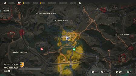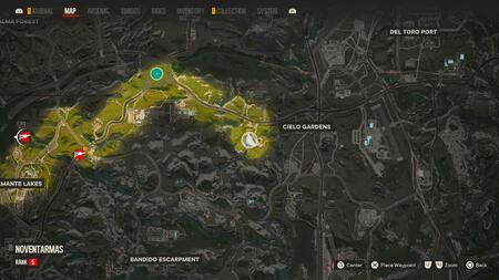 북쪽에서 쉽게 접근할 수 있는 정상으로 가는 길과 함께 마 드루가다 지역 의 작은 산맥 꼭대기에서 엘 아길라 를 찾을 수 있습니다 . 오른쪽에 있는 2개의 짚라인을 지나 더 많은 수탉이 돌아다니는 탁 트인 지역까지 정상으로 올라갑니다. 엘 아길라 는 절벽 가장자리에 있는 큰 갈색 상자와 상호 작용하여 수집할 수 있습니다.