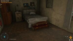 하이파이 버려진 집 안쪽에 소총 정보의 전체 포장. 당신이 찾고 있는 일반적인 가슴은 침실의 침대 발치에 있습니다.