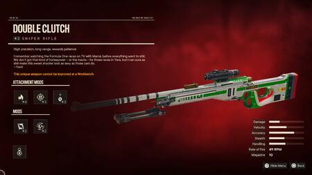 지도에서 Gran Premio Race 를 완료하면 자동으로 더블 클러치 저격 소총이 잠금 해제됩니다 . 경주는 지도에 체크무늬 깃발로 표시됩니다.