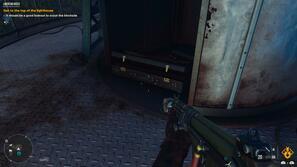 등대 바닥에 있던 몇 명의 경비원을 죽인 상태에서 제공된 두 개의 갈고리 지점을 사용하여 구조물 외부로 올라갑니다. 등대 맨 위에는 문 앞 빨간 상자 안에 휴미도라 가 있습니다 .