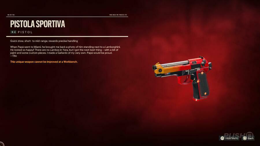 Far Cry 6 에는 6가지 고유한 권총 이 있습니다. 이 권총 은 보조 무기 슬롯을 차지하며 야라 전역에 퍼져 있어 발견할 수 있습니다.