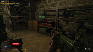 존재하는 경비병을 모두 제거하고 무기고 열쇠를 약탈한 후 기지의 유일한 건물로 들어가 사다리를 타고 지하 벙커로 내려갑니다. 무기고에 들어가시면 바로 앞에 엘 장군 이 있는 상자가 있습니다 .