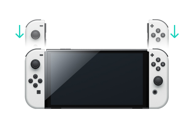 - Joy-Con 컨트롤러를 콘솔의 해당 측면으로 밀어 넣습니다.
