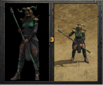 | 부분 세트 보너스 : 2개 착용 아이템: +15-20 파이어 데미지 3개 착용 아이템: +25% 라이트닝 레지스트 풀 세트 보너스 : 10% 더 빠른 시전 속도 마법 데미지 3 감소 +25 모든 저항 공격 등급 +60 마나 +20 |